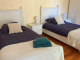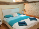 Bedroom 3 (10m2) with exposed stone walls, beams, wooden flooring