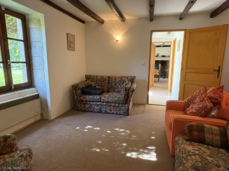 Situated in a quiet hamlet just 10 minutes from Champagne-Mouton, this property offers practical ground-floor living with three bedrooms and a spacious open-plan kitchen/dining area. An insert fireplace adds warmth and creates a cozy space for meals and gatherings.