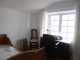 Spacious living room (28m2) with room for a dining-table. Tiled floor, patio doors, fireplace with wood burner.