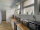 The former school courtyard is now a bright, enclosed workshop featuring large windows, and the property also includes an insulated garage.