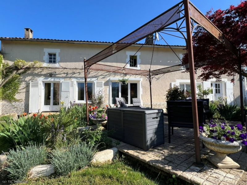 Beautiful old 3-bedroom house with lots of character and lovely light rooms. The house is heated by oil-fired central heating and has mains drainage. The exterior is very private, with numerous outbuildings (including a hangar high enough to park a motor home) and a pleasant, mature garden, which you can enjoy from the lovely covered terrace adjoining the kitchen.