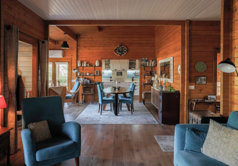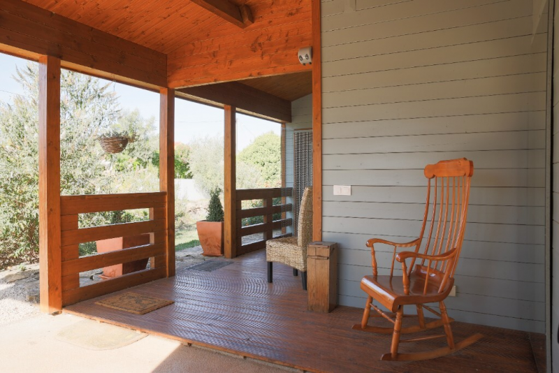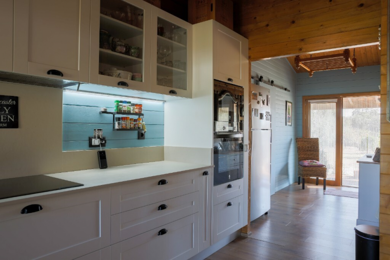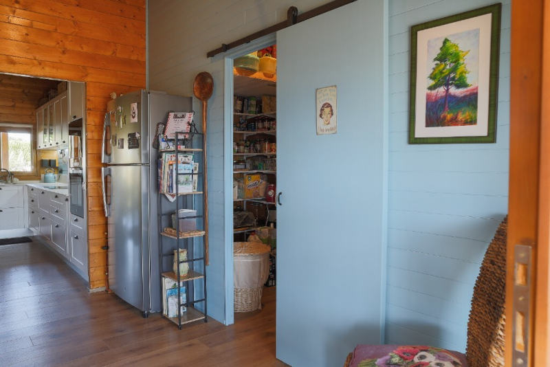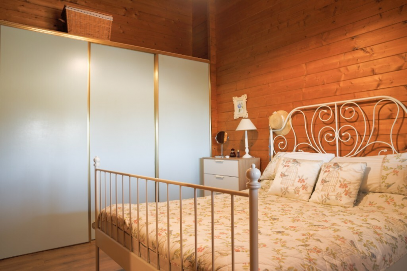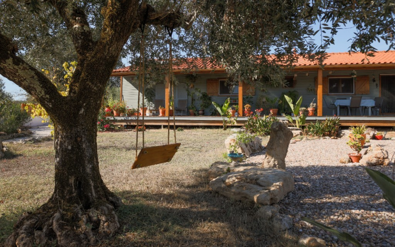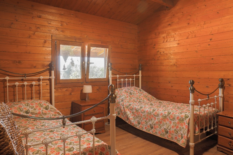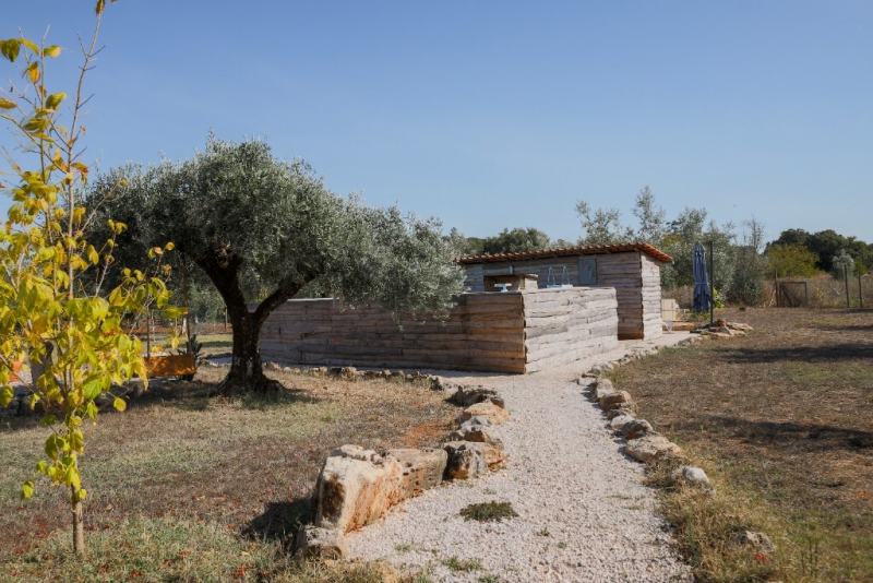 This three-bedroom villa features two with built-in wardrobes and a third bedroom with both interior and exterior access. It also features a bathroom, a spacious 40m² living and dining room with a pellet stove, and a renovated, contemporary, open-plan kitchen.