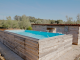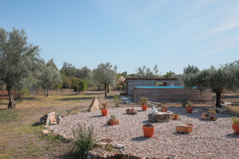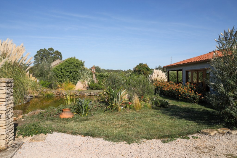 The property's outdoor space is a highlight: it sits on a partially walled 1,800m² lot with a swimming pool, a pond, several trees, and two terraces where you can enjoy the view.