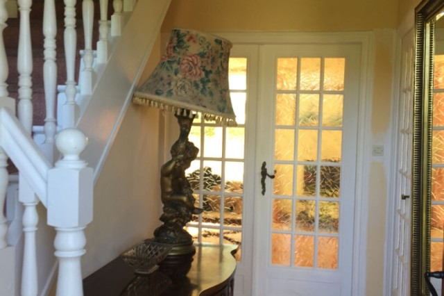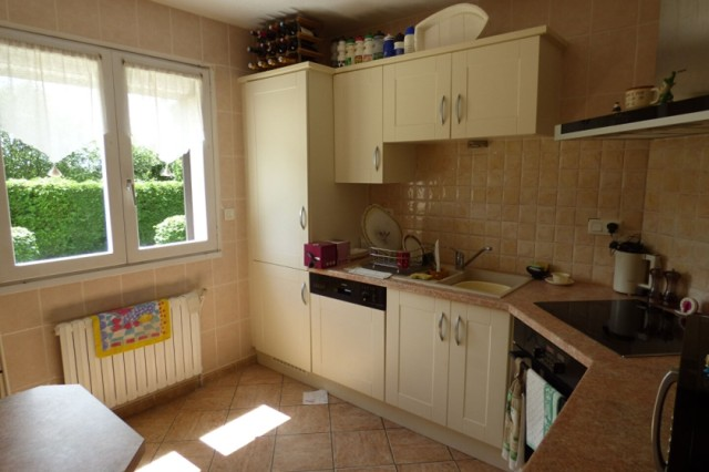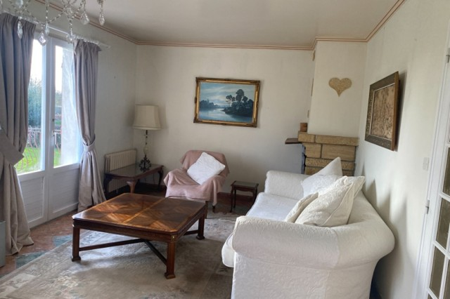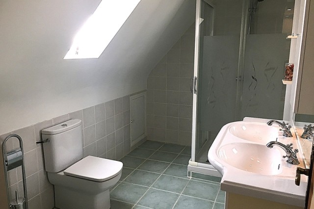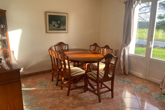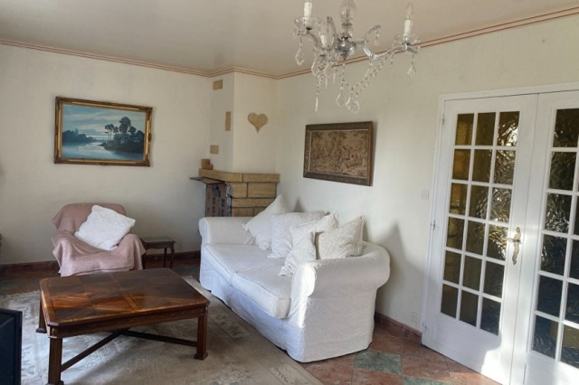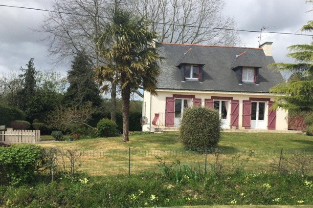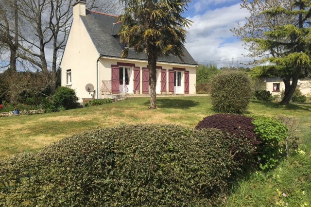 Lovely detached house with full basement facility for sale very close to the village of GUEGON with shops. Living room/lounge with fireplace, terrace. Fitted kitchen, shower room + wc Large entrance. wc Small ,storage room and one bedroom. Upstairs: beautiful staircase, large landing, two bedrooms, an office, another shower room with wc. Full basement with garage, boiler room (oil), laundry room. Small courtyard for several vehicles, leasure garden, open view. All on 1583 m2 of ground. (5.00 % fees incl. VAT at the buyer's expense.)