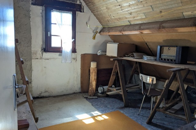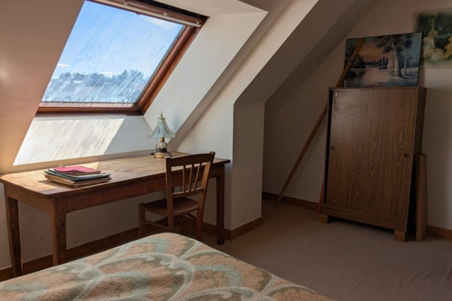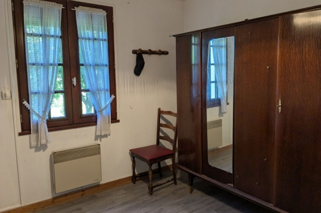 - on the ground floor: a bright living room with fireplace and wood-burning insert, a kitchen opening onto the garden, a bedroom and a toilet and sink.