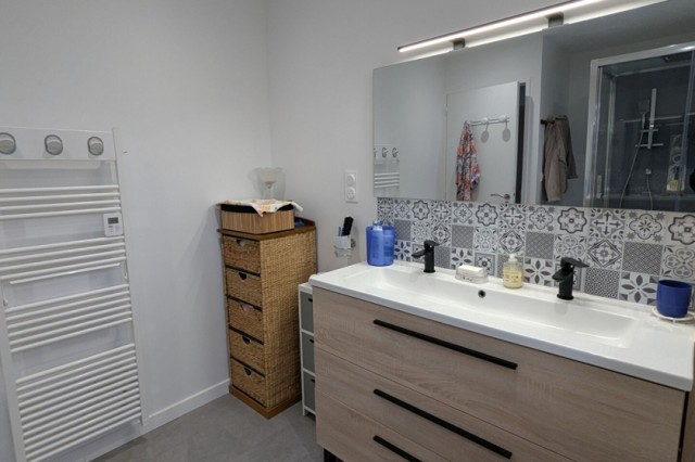 Village house for sale providing shops, medical center, school: . Large private terrace, fitted and equipped kitchen, lounge/dining room with natural light from both sides, laundry room, built-in wardrobes, WC. First floor: large bedroom with superb dressing room, two further bedrooms, spacious shower room. Second floor: attic space that can be converted. Beautiful private south-facing terrace. iMMACULATE CONDiTiON! (3.78 % fees incl. VAT at the buyer's expense.)