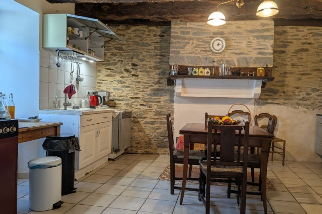 Rare, Josselin Centre! Sustantial House of character for sale offering a spacious lounge with fireplace, a farmhouse style kitchen with fireplace, bathroom and w.c. and a utility room on the ground floor. 1st floor: 3 bedrooms, a bathroom and w.c. 2nd floor: 2 bedrooms and a cloakroom. Outbuilding to be dismantled or reassembled (4 walls without roof). Attached garden. All on 847 m2 in quiet area of the town center. Good overall condition. (4.80 % fees incl. VAT at the buyer's expense.)