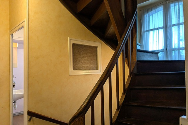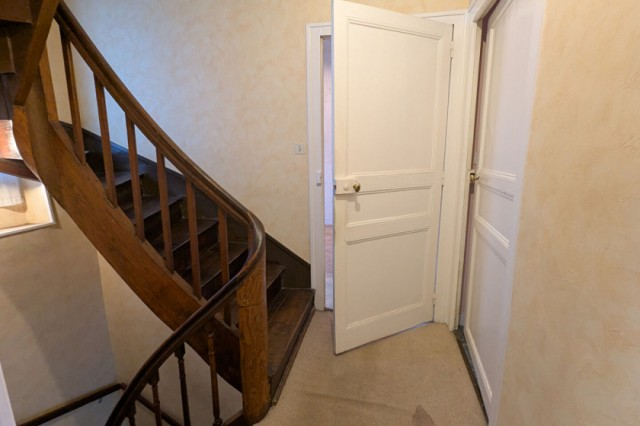 Nice town house for sale in Josselin featuring an entrance hall, high ceilings, a front room with parquet flooring (in need of updating), fitted/equipped kitchen a veranda, a lounge/dining room, and a WC. First floor: 3 bedrooms, one with a sink and built-in wardrobe, and a shower room with shower and WC. Second floor, accessed by stairs: fully insulated attic space with scope for more. basement accessible from the exterior gable end, a large space with a condensing boiler, thermodynamic water heater, and a storage room under the veranda. Both gable ends have been insulated externally. Mains drainage. All on 185 m2 of ground with a small patch of greenery below the veranda (quiet location, bordered by a path). (Option to acquire iN ADDiTiON: Garage with electric gate 40 m2, covered garden shed, and a small orchard, extending from the property). (5.00 % fees incl. VAT at the buyer's expense.)