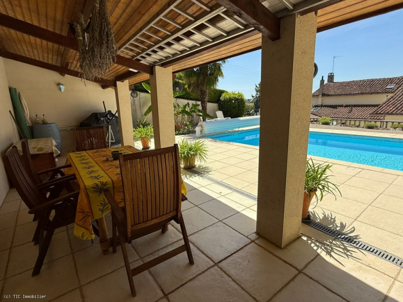 This beautifully renovated home offers versatile accommodation, making it ideal for a large family, a stylish AirBnB, or a practical holiday retreat thanks to its low-maintenance exterior.The outdoor space is truly special, featuring a delightful and heated swimming pool with panoramic views across open fields and towards the River Charente. A covered terrace provides the perfect setting for alfresco dining or simply relaxing in the shade on warm summer days.