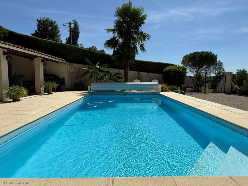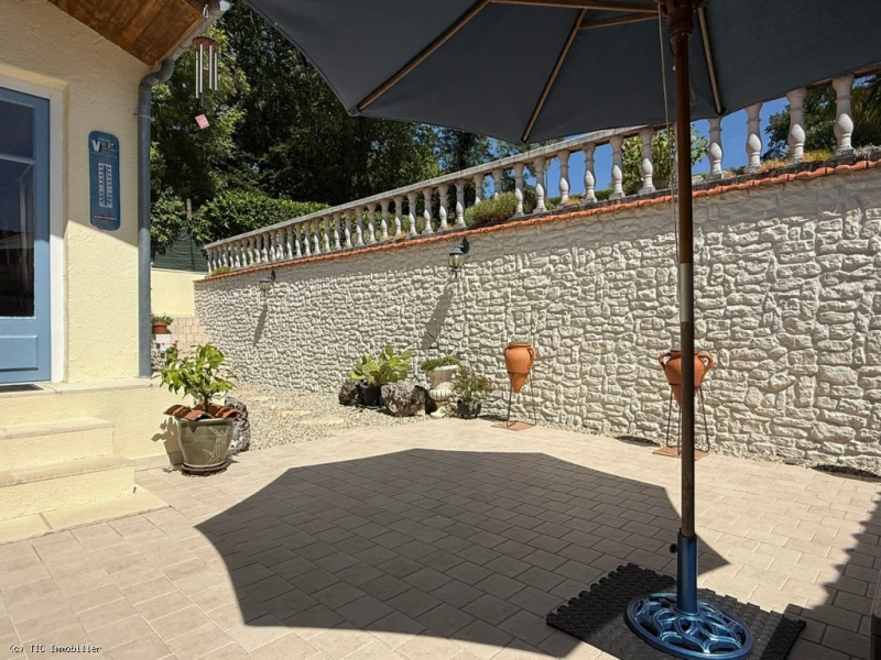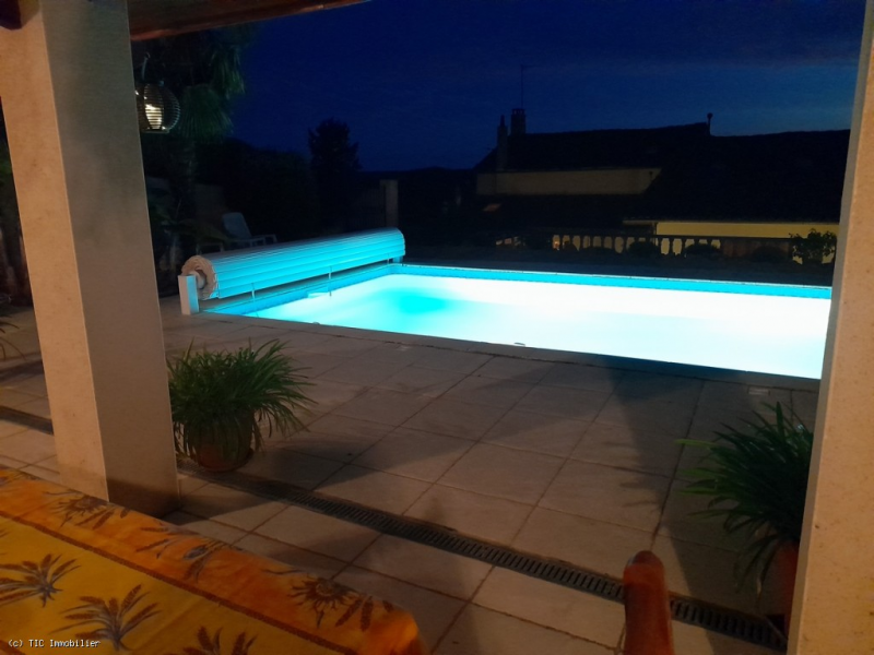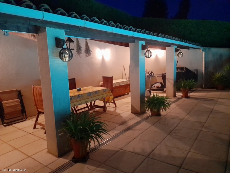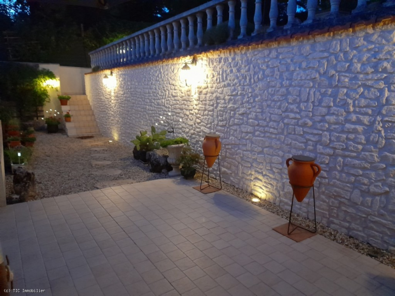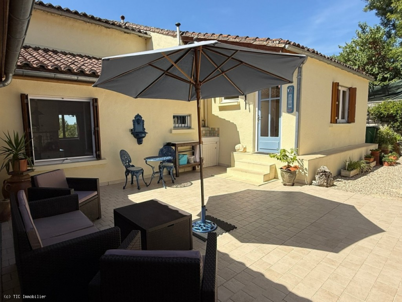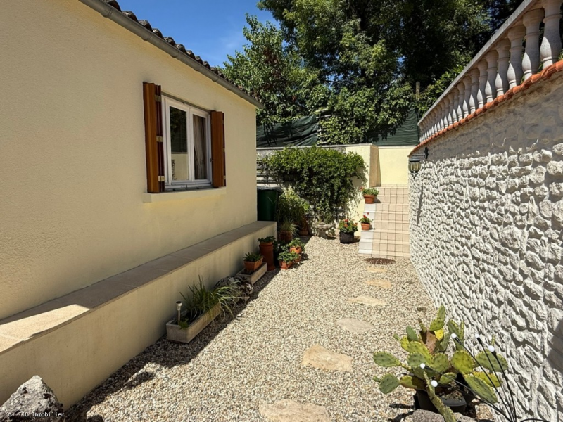 Large front courtyard which set the house back from the land and provides useful parking.Private courtyard to the rear with Guest Annexe (Bedroom 10m2, laminate floor, fitted wardrobes and a shower room 3m2 tiled floor, shower, WC, hand basin.Pool area with lovely views : 8m x 4m heated, salt water swimming pool with sand filter and electric cover. Lovely covered terrace area to take in the views and perfect for shady dining. Pump room / useful storeroom. Secondary vehicule access and extra parking.A lovely bonus is the little garden opposite the property with gorgeous rosemary hedges. A sensory delight. All on a total manageable plot size of 903m2.