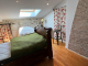 Bedroom 2 (16 m2) : parquet floor, cupboard, exposed stone, velux, access to the outside via an original stone staircase