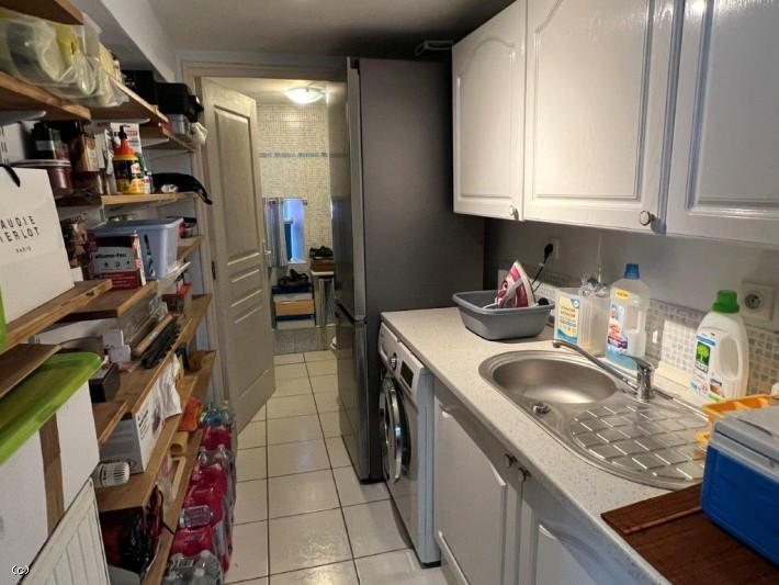 Laundry / Boiler room (8 m2): tiles, sink, cupboard, boiler (water + heating)
