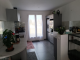 -Open-plan living area with fitted kitchen (40m2): tiled floor, pellet stove, French windows
