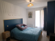 -Bedroom (14m2): floating parquet flooring, built-in cupboard, French windows opening onto the terrace