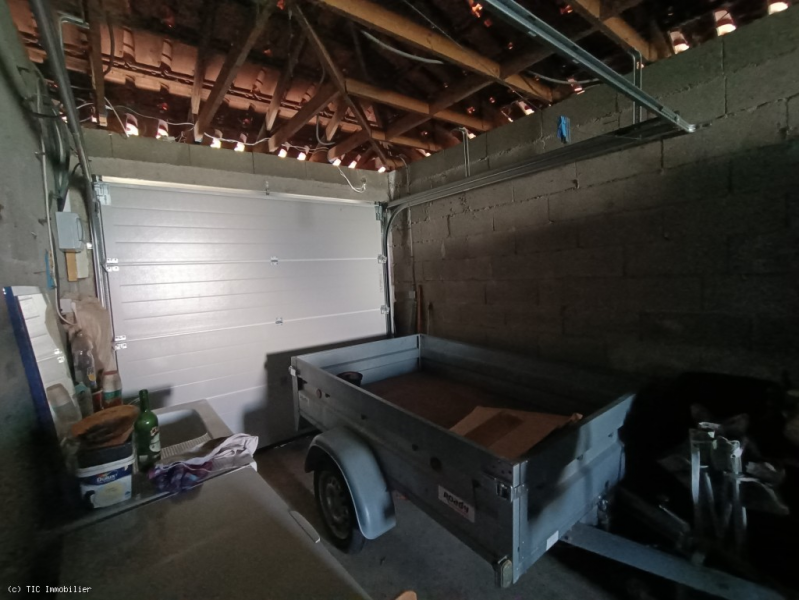 -Adjoining garage (27m2) with concrete floor, a sink, access to the loft and mains electricity