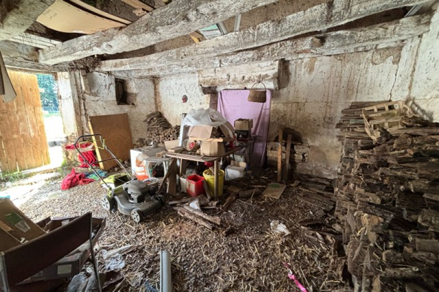 Outside, the property has an adjoining storage room and cellar, and a very large three-part barnand a garage.