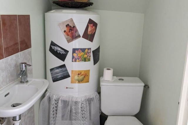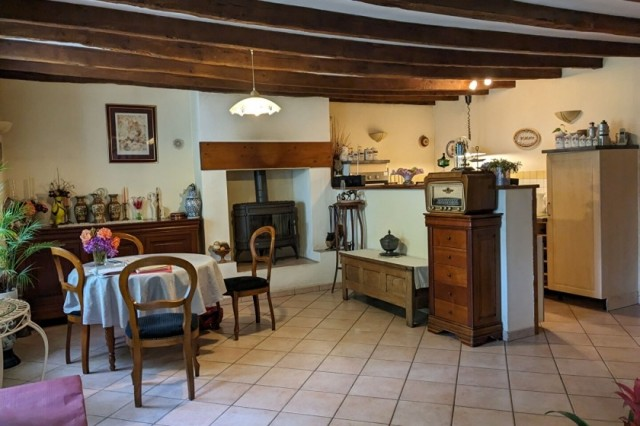 the 2nd house, used as a gite, includes a lounge with a kitchen area, upstairs, a bedroom, a toilet and a bathroom. Garage as outbuilding. Seperate water and electricity meters in place for the gite. Enclosed garden of 719 m2. (5.50 % fees incl. VAT at the buyer's expense.)