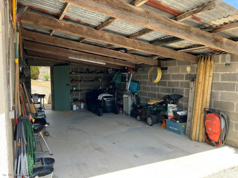 -Entrance (9.5m2): tiled floor, exposed stone-Fitted Kitchen / Dining room (28m2): parquet flooring, gas (Range style) stove, underfloor electric heating-Hall (2m2): parquet flooring, cupboard-Living room (34m2): floating parquet floor, 12kW wood-burning stove, stone, beam, electric underfloor heating, air heat vent to master bedroom-Laundry room (5m2): tiled floor, sink (could easily be converted to a shower room)-WC (1m2): tiled floor, washbasin-Living room (34m2): Laminate floor, 12kW wood-burning stove, stone, beam, electric underfloor heating, air vent to bedroom-Bedroom (18m2): tiled floor, stone, beam, air vent to attic, door to garden