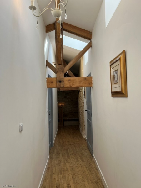 -Mezzanine / Study (8m2): parquet, exposed stone-Corridor (7m2): parquet floor, 2 Velux windows, exposed stone-Shower room (3m2): tiled floor, Velux window, shower, washbasin, WC-Bedroom (18m2): parquet, beam, exposed stone-Master Bedroom (30m2): parquet floor, beams, exposed stone, (access to 18m2 attic) with private shower room (6m2): tiled floor, Italian shower, WC, 2 hand basins, Velux window, heated towel rail