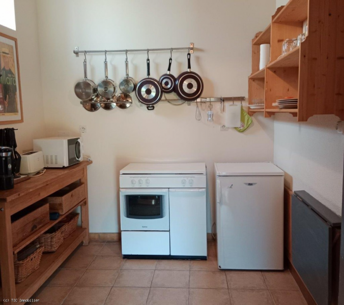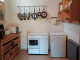 -Fitted kitchen (8m2): tiled floor, pellet stove