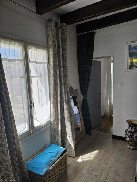 -Bedroom (24.16m2): 2 skylights, wooden floor, small window, cupboard (curtain)