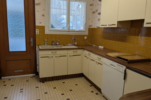 Just 2 minutes from the center of Pleucadeuc, this spacious detached house is for sale, set on approximately 840 m2 of land. it comprises a full basement, a ground floor with a veranda, a fitted kitchen, a living/dining room with a fireplace and wood-burning insert, two bedrooms, a shower room, and a WC. Upstairs, there is a landing, two bedrooms, and a WC. Some updating is required. ideal for first-time buyers or families. (4.89 % fees incl. VAT at the buyer's expense.)