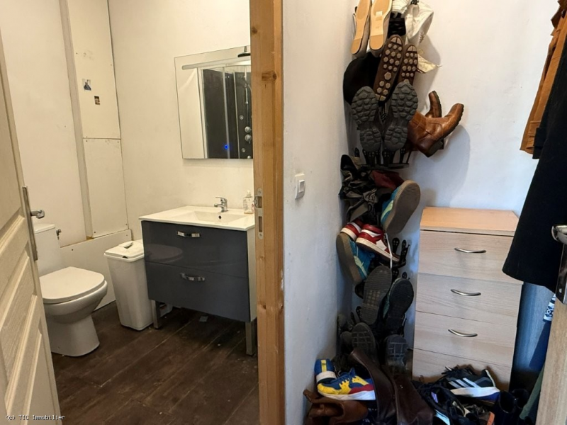 - Entrance (14m2): tiled floor, access to cellar 1- Fitted Kitchen (20m2): painted concrete floor, wood stove, beams- Living Room (28m2): wooden floor, wood stove- Living Room (17m2): wooden floor, beams- Bedroom (15m2): wooden floor, beams, door to the garden- Shower Room (5m2): painted concrete floor, toilet, shower, hand basin, recent hot water tank