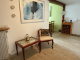 -Living room 33 m2: tiled floor, wood burner, beams, door to garden