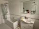 -Bathroom 9m2: laminate flooring, bath, washbasin, shower, toilet