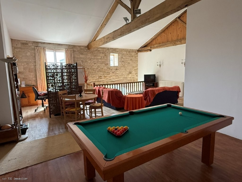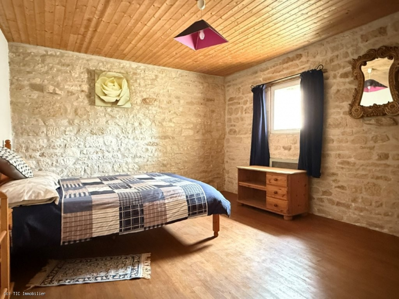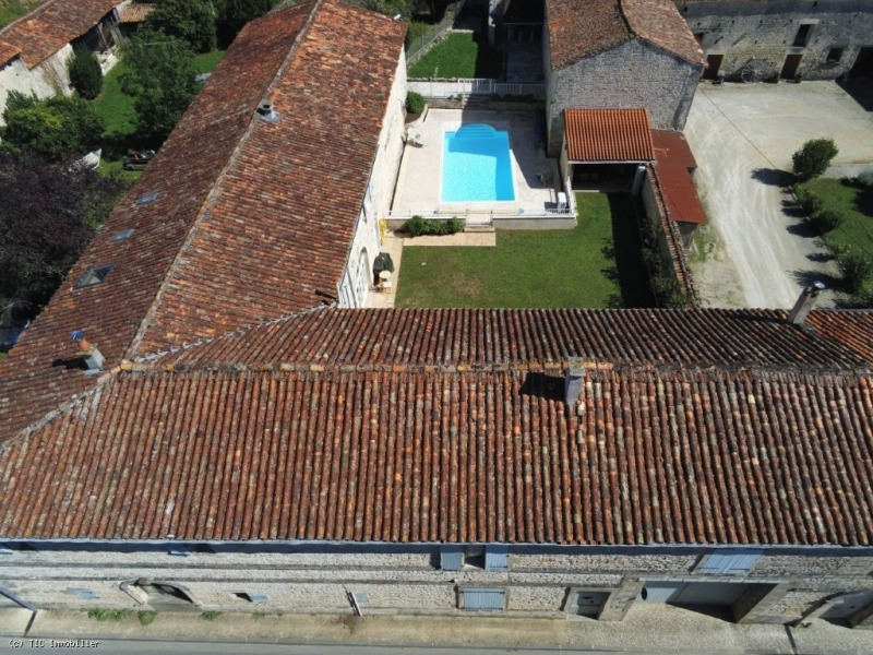 Located in a lovely village between Ruffec and Aigre, this spacious house, built in 1856, offers 6 bedrooms, 3 bathrooms, and a heated pool nestled in a private, sheltered garden. It features oil-fired central heating and two cozy living rooms, each with a wood-burning stove for relaxing evenings. Filled with natural light, airy, and showcasing exposed stone in some rooms, the house combines charm and comfort. A covered terrace allows you to enjoy the outdoors year-round. Very well maintained, this property would be perfect for a large family or a mixed-use project, with the potential to rent out part of it as an Airbnb.