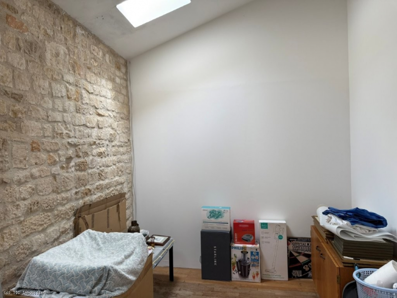 -Bedroom 12 m2: parquet flooring, skylight, exposed stonework