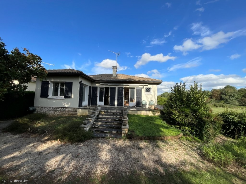 Tucked away at the end of a quiet no-through-road in the market town of Ruffec, this light-filled bungalow offers the rare combination of town living with the peace and privacy of the countryside. Built in 1971 and lovingly maintained ever since, the property sits in mature, fenced gardens that open onto wide fields, giving the sense of space and seclusion without sacrificing convenience.