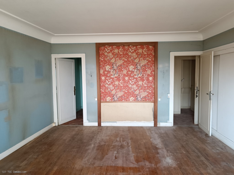 Room (20m2): parquet flooring, built-in bookcase, single-glazed French window opening onto a balcony, former bedroom