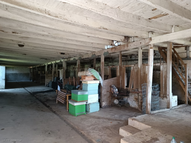 -Back garden with pond, orchard, henhouse, very large stable (around ten stalls) with upper floor, vegetable garden, plot with a separate access to the property, boiler room with wood-fired boiler, shed, former laundry room, former toilet