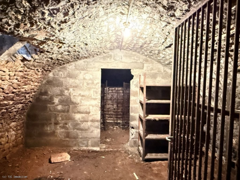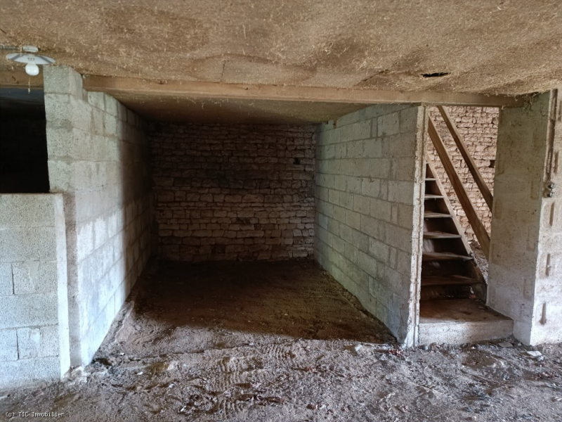 -Room (77m2): tiled, concrete and parquet flooring; designed as a living area with kitchen; exposed stonework; bay window; door leading to the vaulted cellar