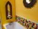 -Bathroom (7m2): tiled floor, shower, WC, washbasin, bath, exposed stone, Velux windows