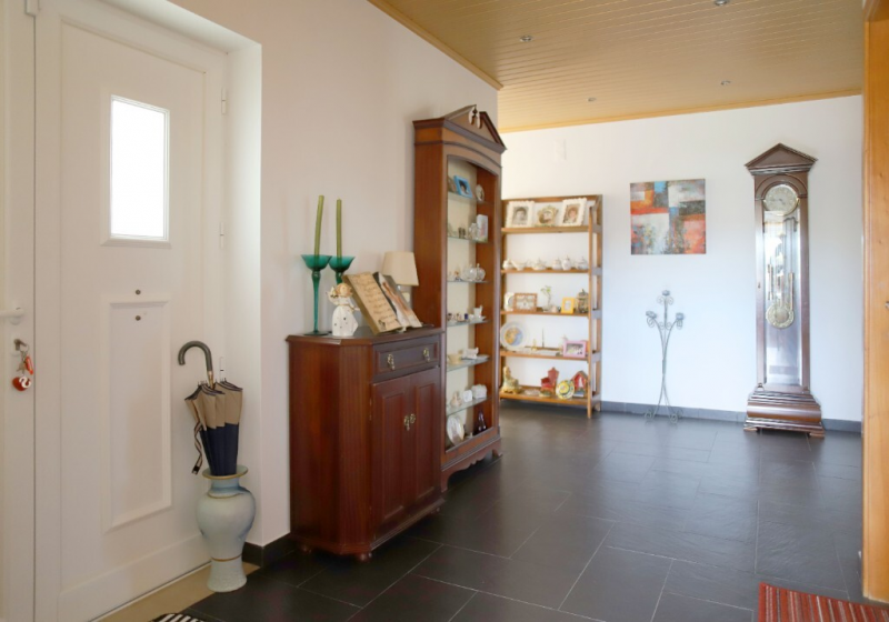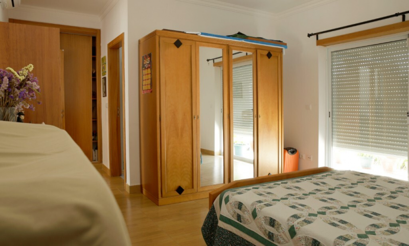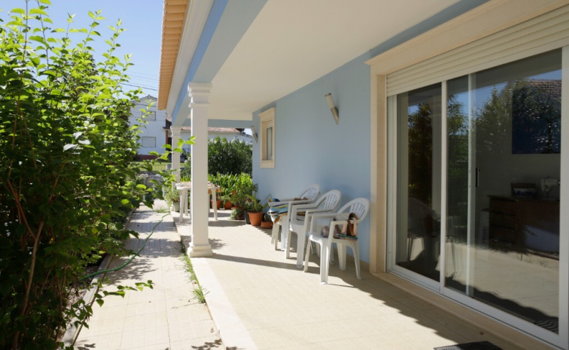 It also features a large garage that can be converted into a 2-bedroom apartment, air conditioning in the living room, a wood burning stove, central vacuum installation, solar panels, and a Portuguese-style eaves.