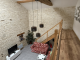 Open plan living Area (27m2): tiled floor, kitchenette, open to ceiling, skylight, exposed stone walls
