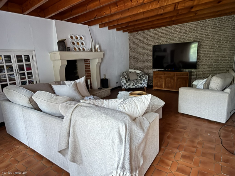 Fitted Kitchen (32m2): tiled floor, fireplace insertLarge Hallway (18m2): linoleum flooring, exposed beamsBoiler Room (4m2): tiled floorWC (1m2): tiled floorBathroom (5m2): tiled floor, sink, bidet, bathtub (jacuzzi-style)Living Room (30m2): tiled floor, fireplace, double patio doors, exposed beamsBedroom 1 (35m2): tiled floor, patio doorVeranda (13m2): stone-tiled floorUtility Room (14m2): tiled floor, washing machine connection