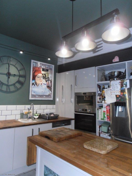 Kitchen-diner (23.5m2) The kitchen has a range of fitted units and a central island, and an integrated oven and microwave. Tiled floor and carpet
