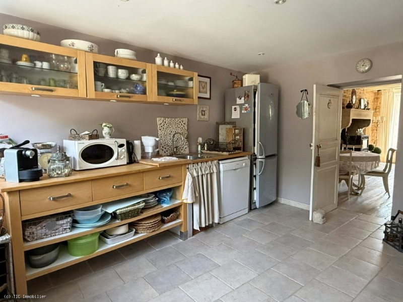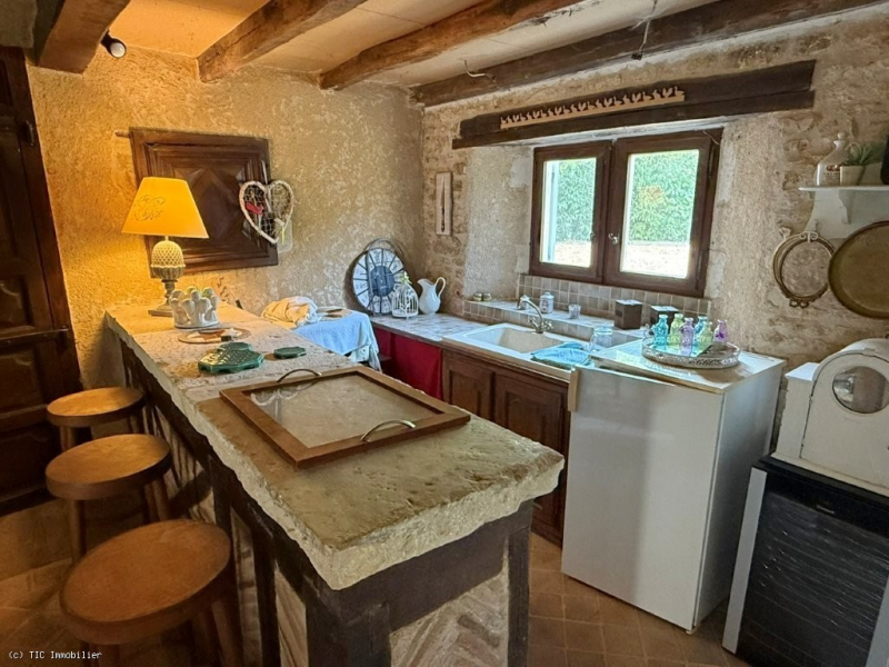 Sitting Room 27m2 Tiled and wood floor, wood burnerFitted Kitchen 13m2 Tiled floor, door to patioDining Room 16m2 Tiled floor, door to patioBedroom 25m2 Wood floor, exposed stone, built-in wardrobe.Shower Room 5m2 Tiled floor, walk-in shower, hand basin, heated towel railWC 1m2 Tiled floorBoiler Room, boiler installed in 2023Hall 3m2 Tiled floor leading to large Sitting Room 37m2 Original "tommettes" floor with small kitchen area.