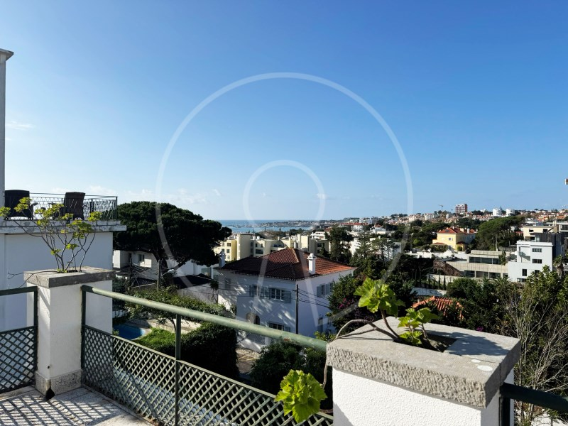 Large terrace overlooking the front garden and Cascais bay.