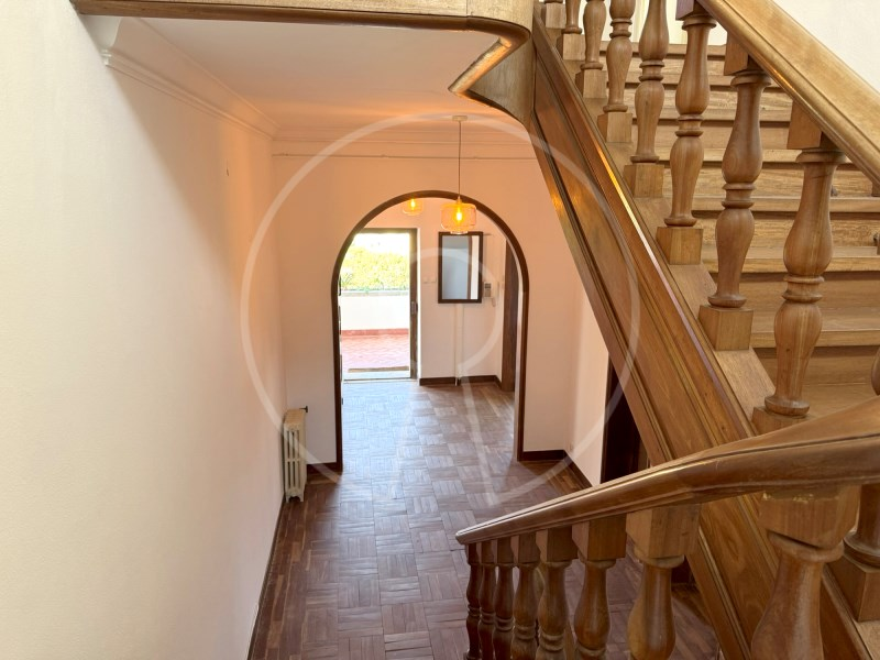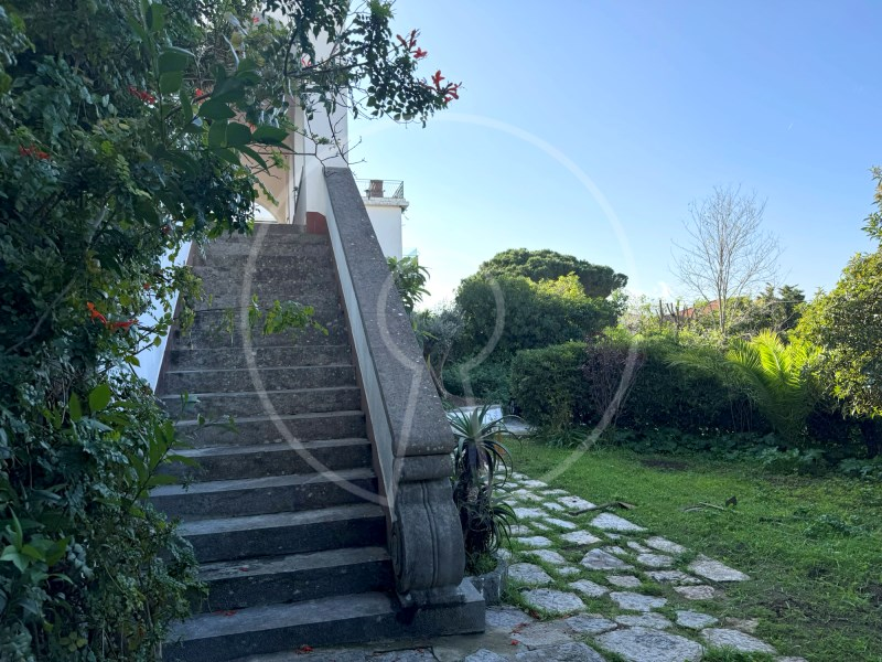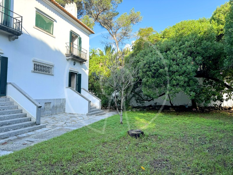 It has 3 living rooms with fireplace, wooden floors in good condition, impresive wooden staircase inside, land with a garden that surrounds the property and large terraces with superb views over the bay of Cascais.