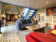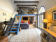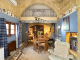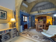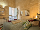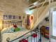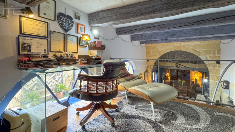 A short corridor leads into a cosy, traditionally arched dining room, which then opens onto the main living space with high ceilings. Overlooking this area is a mezzanine-level office with views across the pool and courtyard. At this level, a staircase also provides direct access to the master bedroom.