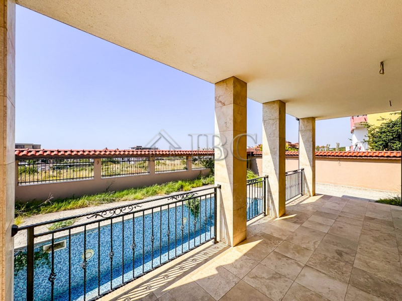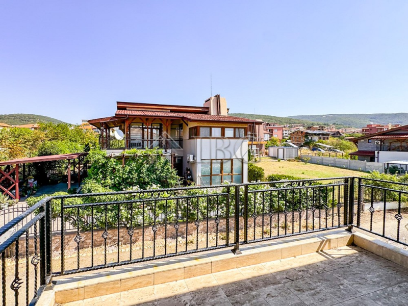 A two-storey house in Sveti Vlas with a private swimming pool, spacious rooms, and a large terrace with sea view.