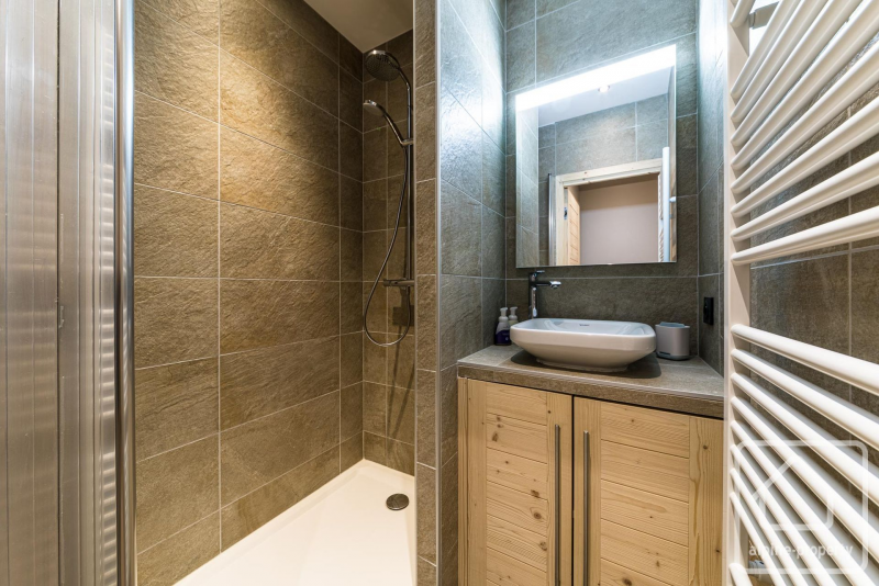 **Externally**, the apartment benefits from a private garage, dedicated covered parking space, and a large private cave with heated boot warmers, perfect for ski equipment in winter and bike storage in