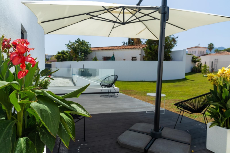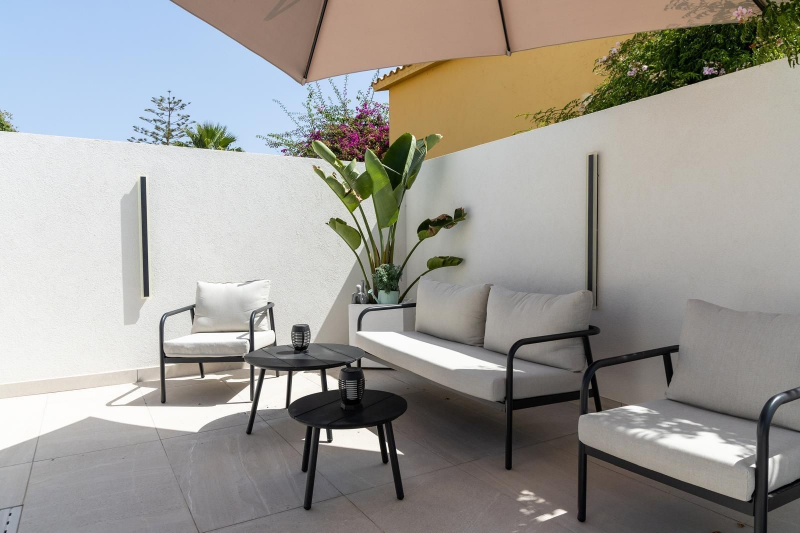 Storage and Privacy: Private patio with a relaxation area and a garage with space for high-end vehicles in the heart of Solymar.