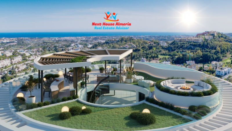 Next House Almeria is excited to present this unique Luxurious circular apartments that reflect exclusivity and design excellence that is remarkable in both form and function. This modern penthouse with solarium and spacious terrace, 3 bedrooms, 3 bathrooms and 1 guest toilet is located in an exclusive gated community in La Quinta, between Marbella and Benahavis.