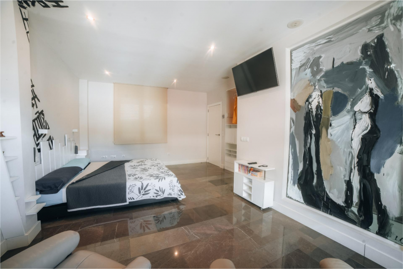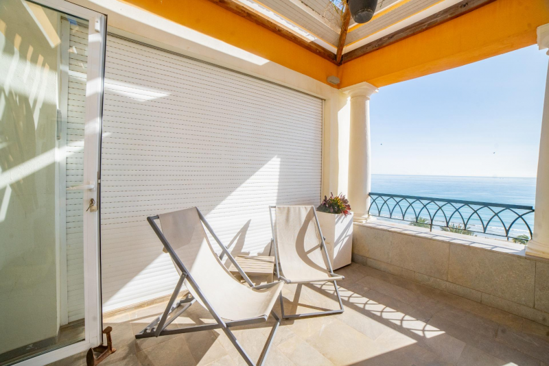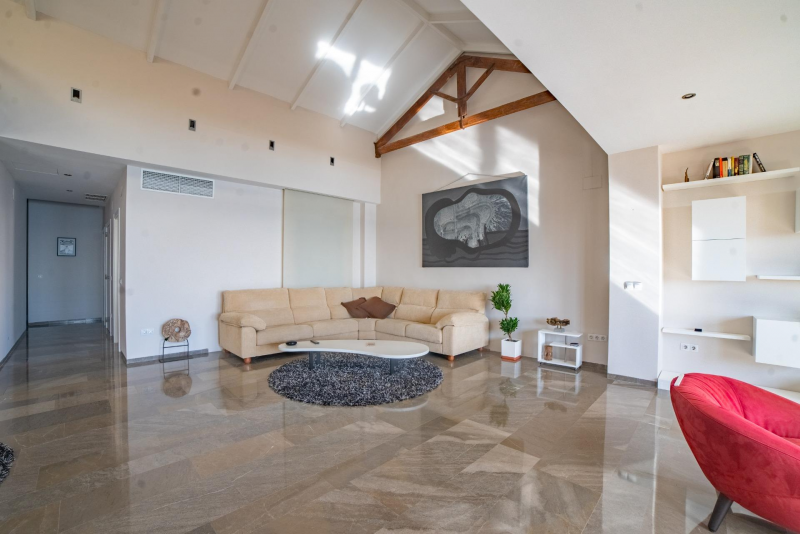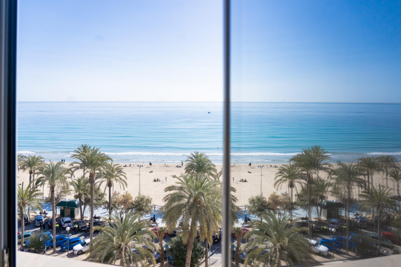 Spectacular penthouse in front of Postiguet Beach with magnificent views next to the Santa Bárbara Castle.~~The penthouse features a spacious living room, two double bedrooms with en-suite bathrooms, and a third double bedroom in a loft area, also with its own en-suite bathroom. The open space extends from the living room to a fully equipped kitchen. On the same floor, there is a laundry room and a guest toilet.~~The property has been renovated with luxurious finishes, including marble floors, built-in wardrobes, and high ceilings, creating a modern and versatile atmosphere that enhances comfort and tranquility. The sunrises from the terrace make for truly unforgettable moments.~~Its privileged location offers access to all essential services, including shops, public transportation, financial institutions, and leisure options.~~