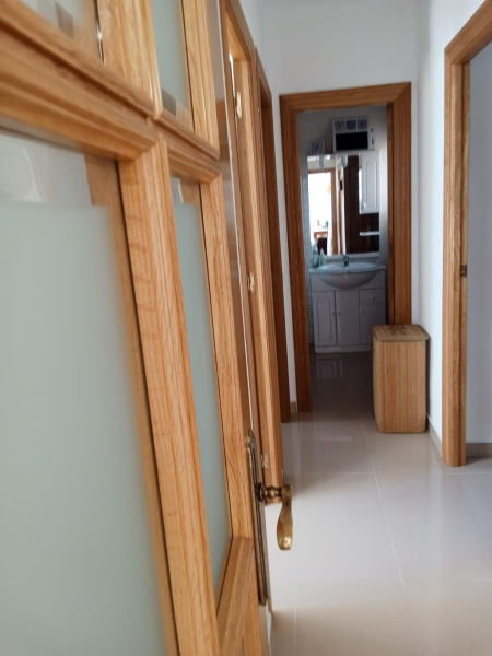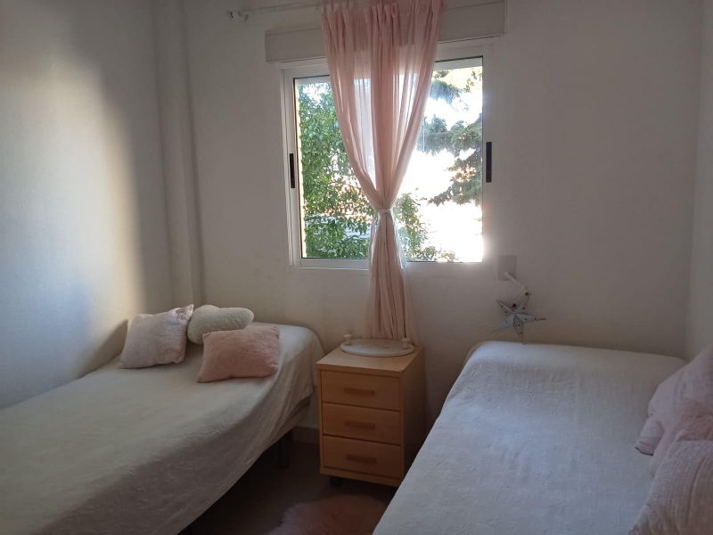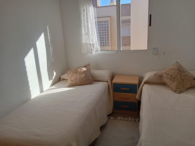 Splendid Refurbished Apartment in Santiago de la Ribera, Just 80 Metres from the Beach~~A splendid, fully renovated apartment located in Santiago de la Ribera, only 80 metres from the beach and the town’s beautiful seafront promenade.~~The property features three bedrooms, one full bathroom, one guest toilet, a bright living room with a spacious terrace, and a fully fitted kitchen with a utility area.~~It is being sold fully furnished and equipped, ready to move into.~~The apartment has been completely refurbished and benefits from two air-conditioning units with hot and cold functions, built-in wooden wardrobes, ceiling fans, fly screens on all windows, and new double-glazed windows throughout.~~The property is part of a secure gated complex with a beautiful communal swimming pool and landscaped gardens.~~A private parking space is included in the sale.~~Don’t miss the opportunity to enjoy the best beaches of the Mar Menor, as well as easy access to Alicante and Cartagena.